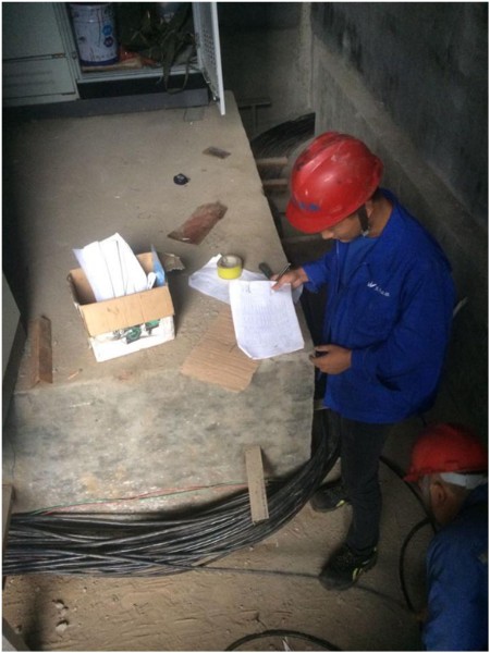 圖為楊工在現(xiàn)場安裝設(shè)備