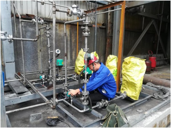山東WRTS脫硫、脫硝、濕電現(xiàn)場由于施工隊安裝任務(wù)重,一直到9月28日才開始電氣方面的施工安裝,而此時距離業(yè)主要求的9月30日完成調(diào)試只有2天的時間,接下來的工作還有鋪設(shè)電纜、接線、送電前線路校驗、通電試機、管道試壓等一系列工作。面臨時間緊、任務(wù)重的雙重壓力,楊正剛不畏艱辛,加班加點兢兢業(yè)業(yè)工作,終于趕在9月28日夜里完成電氣安裝的工作,然后連夜開始送電調(diào)試設(shè)備。夜里施工,光線不好,調(diào)試工作需要付出比平時工作量的兩倍,他中間配合施工人員進行管路壓力試驗、噴槍的霧化效果的觀測。9月30日夜里十一點,設(shè)備全部運行正常,調(diào)試工作告一段落,看到氮氧化物降了下來,大家才安心離去。