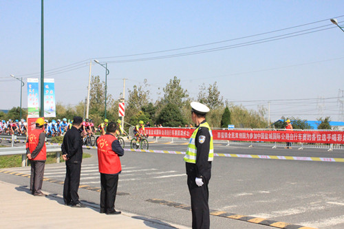 圖為我司志愿者隊伍為沿海濕地國際公路自行車賽助威