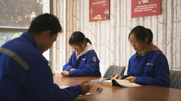 圖為我(右一)和同事在公司書吧