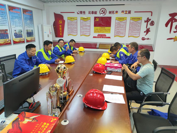 經(jīng)過(guò)十多天的前期準(zhǔn)備,項(xiàng)目于9月9日正式開(kāi)工,受當(dāng)?shù)匾咔橛绊懀惭b人員只能陸續(xù)進(jìn)場(chǎng)。8日下午,項(xiàng)目經(jīng)理王蘇林及機(jī)務(wù)專工王禮春組織安裝人員強(qiáng)調(diào)安裝內(nèi)容、安裝及安全注意事項(xiàng)等(圖5)?!鞍踩筮^(guò)天”,當(dāng)天下午他們隨即又參加了業(yè)主的安全培訓(xùn)(圖7),忙碌的他們似乎忘卻了中秋佳節(jié)的來(lái)臨。