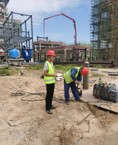 “用腳掌丈量祖國(guó)還很遙遠(yuǎn),但是走完項(xiàng)目現(xiàn)場(chǎng)卻不遙遠(yuǎn),戴好安全帽就出發(fā)了?!表?xiàng)目經(jīng)理史志輝每天都會(huì)繞著整個(gè)制作場(chǎng)走上無(wú)數(shù)圈,督促著工程的安全、質(zhì)量、進(jìn)度,就連煙道管撐焊接質(zhì)量他都不放過(guò),親自檢查過(guò)才放心(圖4)。他說(shuō):“堅(jiān)守崗位是我們的職責(zé),工程安全保證了,進(jìn)度上去了,質(zhì)量保證了,天天就像是過(guò)節(jié)。”