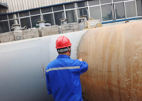 近百天緊鑼密鼓地作業(yè)后,13#、14#、9#、10#除塵器均已安裝調(diào)試完成交付業(yè)主,11#、12#除塵器也正有條不紊得吊裝、組裝、焊接。項(xiàng)目經(jīng)理陳岡習(xí)慣性地對(duì)拼裝焊接的管道進(jìn)行噴砂除銹油漆前焊縫的檢查(圖8)。作為公司的老員工,他清楚地知道要做好每道細(xì)節(jié)工作,不能有絲毫僥幸心理。他“過(guò)節(jié)”的方式就是默默堅(jiān)守在工作崗位上,盡職盡責(zé)、盡心盡力。