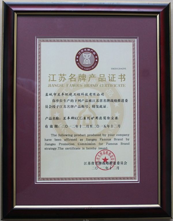 我司“蘭豐牌KCG系列礦用濾筒除塵器”榮獲江蘇省名牌產(chǎn)品證書,市局領導希望我司再接再厲把蘭豐環(huán)保的產(chǎn)品推向海外打造成全國知名品牌。