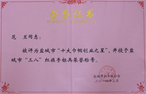 3月26日,由鹽城市婦聯(lián)主辦的“巾幗創(chuàng)業(yè)競風(fēng)流”風(fēng)采展示活動在文化藝術(shù)中心隆重舉行。市委書記、市人大常委會主任朱克江,省婦聯(lián)主席繆志紅出席并講話。蘭豐環(huán)保公司總經(jīng)理范蘭被評為首屆十大巾幗創(chuàng)業(yè)之星。