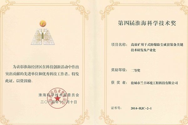 日前,由蘭豐環(huán)保公司精心研發(fā)的“高效礦用干式防爆除塵成套裝備關(guān)鍵技術(shù)研發(fā)及產(chǎn)業(yè)化”項(xiàng)目喜獲第四屆科學(xué)技術(shù)獎(jiǎng)二等獎(jiǎng)。