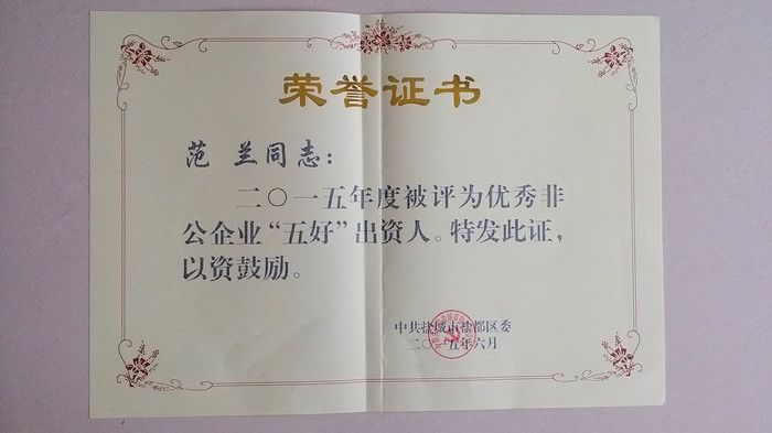 優(yōu)秀非公企業(yè)“五好”出資人是指達(dá)到“科學(xué)發(fā)展好、誠信守法好、勞資關(guān)系好、支持黨建好、社會形象好”的非公企業(yè)出資人,是對企業(yè)和企業(yè)家的肯定。范董事長以科技創(chuàng)新、誠信經(jīng)營為指導(dǎo),秉承“誠信貴于金,包容寬于海,道德高于山”經(jīng)營理念,關(guān)愛員工,熱心社會公益,并多次獲得省優(yōu)秀科技型企業(yè)家、省333人才,科技進(jìn)步獎(jiǎng),巾幗創(chuàng)業(yè)之星、 “三八”紅旗手等多項(xiàng)榮譽(yù),引領(lǐng)蘭豐環(huán)保乘風(fēng)破浪,勇往直前。