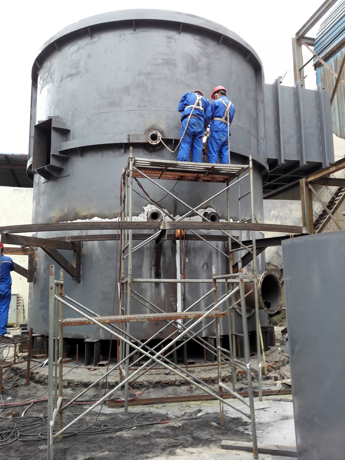 下午兩點半室外氣溫已逼近36度,無情的太陽直射在鋼板上,手一碰到鋼板,你會被燙的自覺縮了回去。走進工地上,一股熱浪迎面撲來,立刻有一股呼吸困難即將窒息的感覺。耳邊充斥著焊割刺耳的聲音,迎面撲來的是嗆人的油漆味及電廠難聞的味道,映入眼簾的是同事們忙碌不停的身影。他們有的在用氣割下料,有的在用焊槍焊接,有點在指揮吊車,有的在除銹噴漆……不知不覺走進脫硫塔里面,由于采用倒裝法,里面的工人仿佛呆在一個巨大的鐘里,加上烈日的燒烤,里面的溫度已經(jīng)接近50度。項目部同事正站在高高的腳手架上面,對內(nèi)壁進行焊接和打磨,豆大般汗珠在臉上任意流淌,他們卻沒有時間擦一擦,汗?jié)窳艘律溃廊蝗褙炞⒌毓ぷ髦?。施工人員盡量避開中午的露天及高空作業(yè),以保證施工的安全。而在氣溫較低的早上和傍晚,施工隊伍便加緊作業(yè),以保證進度。后勤保障,送清涼更送關(guān)懷。每天都會為項目部的同事準備充足的飲水,飯菜上保證營養(yǎng)。