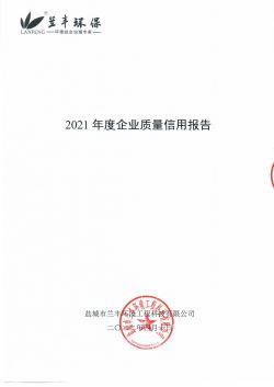 關(guān)于《2021年度企業(yè)質(zhì)量信用報(bào)告》的公示2022-04-13鹽城市蘭豐環(huán)境工程科技有限公司(以下簡(jiǎn)稱為“蘭豐環(huán)保"或“本公司”) 2021 年公開(kāi)發(fā)布的《企業(yè)質(zhì)量信用報(bào)告》,是結(jié)合本公司2021年度質(zhì)量誠(chéng)信體系建設(shè)情況編制而成。 -